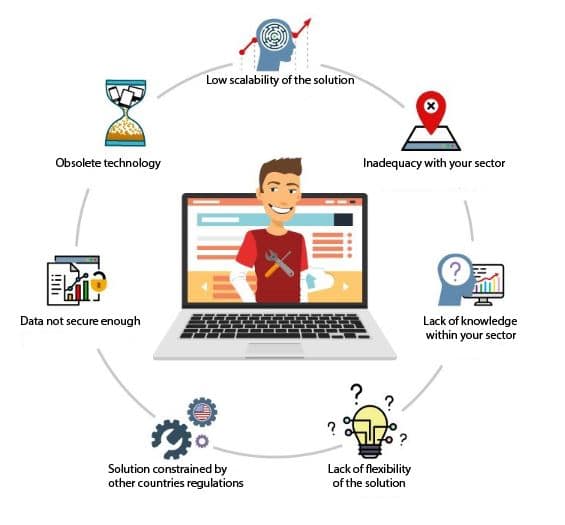 On the reverse side, a small-scale business solution that is too specialised will undoubtedly lack agility and the possibility of customisation. This is the case for the majority of small solutions built in silos. Very often in order to integrate the business processes of your organisation, these solutions require you to: