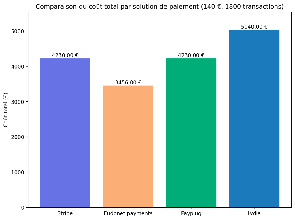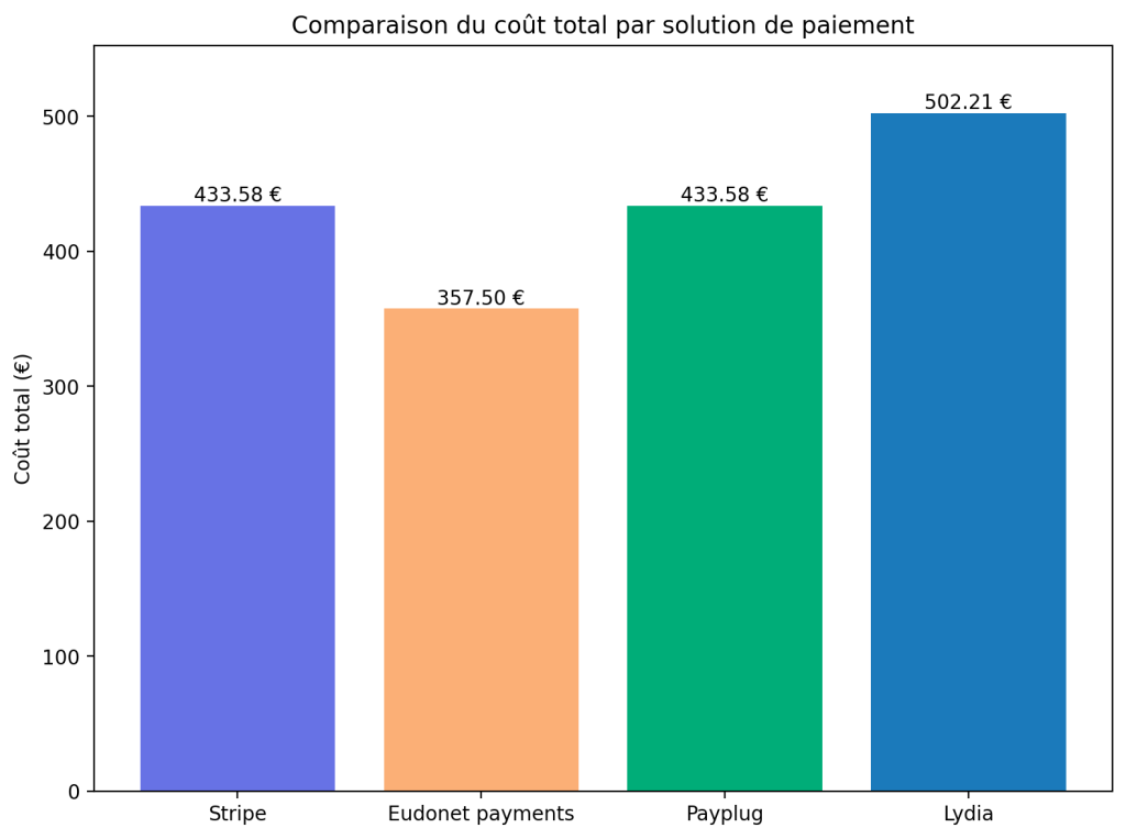 • Stripe : simple, fluide, bien intégrée au site, mais plateforme extra-européenne et coûteuse.