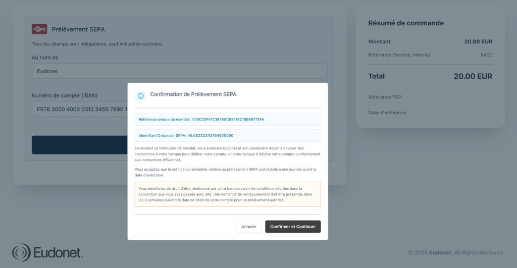 Eudonet Payments génère automatiquement son Mandat SEPA.