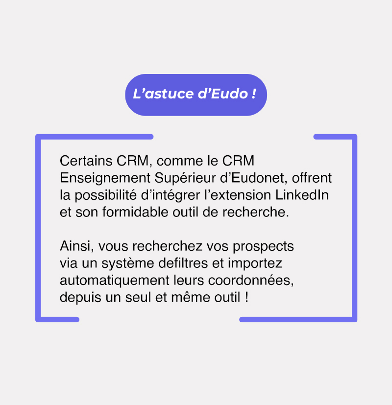 Le guide détaille l'utilisation du CRM dédiée à l’Enseignement Supérieur d'Eudonet avec ses fonctionnalités spécialisées : intégration LinkedIn pour la prospection, connexion avec SOLTéA via API, création de liens directs vers votre fiche établissement, tableaux de bord pour le suivi des collectes et automatisation complète du processus de remerciements.